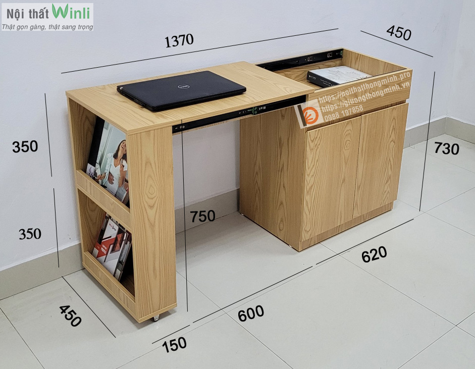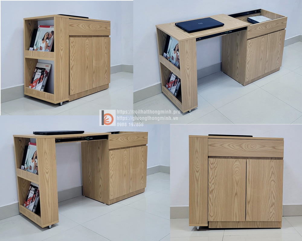 >>Xem thêm: Bàn thông minh xếp gọn kết hợp tủ sách
