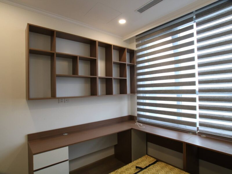 Mẫu giường thông minh cho phòng ngủ được kết hợp thêm nhiều món đồ khác đi kèm như tủ áo, bàn học, tủ kịch trần,..giúp phòng ngủ nhỏ đủ đồ mà vẫn gọn gàng, rộng rãi.